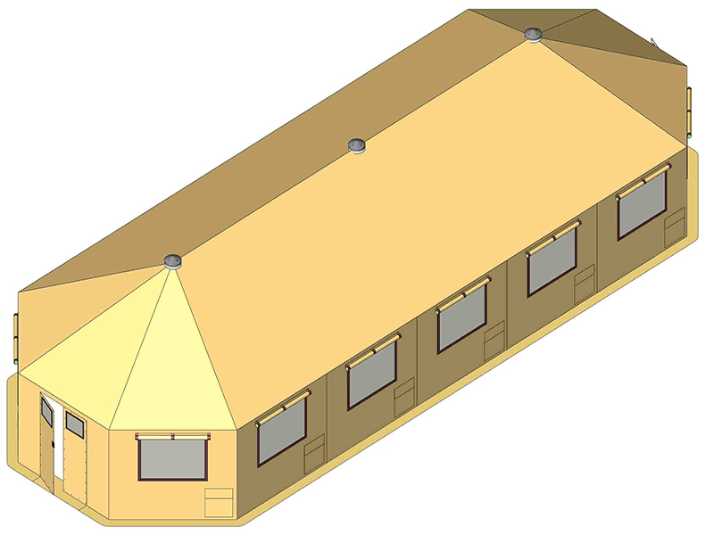 The MLH (Long Habitat) series shelters offer substantially more uninterrupted floor space than our standard MH series octagonal design. The MLH is an elongated octagonal shelter that offers the same structural rigidity as its smaller counterpart. Due to their simplicity in construction and shape they are erected easily and are extremely stable in high wind conditions. The MLH series shelter is ideal for larger workspaces including areas to be used for kitchens, dining and dormitories.