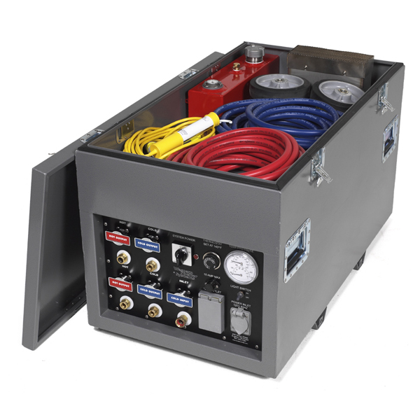 This rugged and self-contained hot water delivery system provides up to 45.5 LPM (12 USGPM) of controlled temperature flow in half the weight and at approximately one third the cost of competing military and conventional style water heating systems.